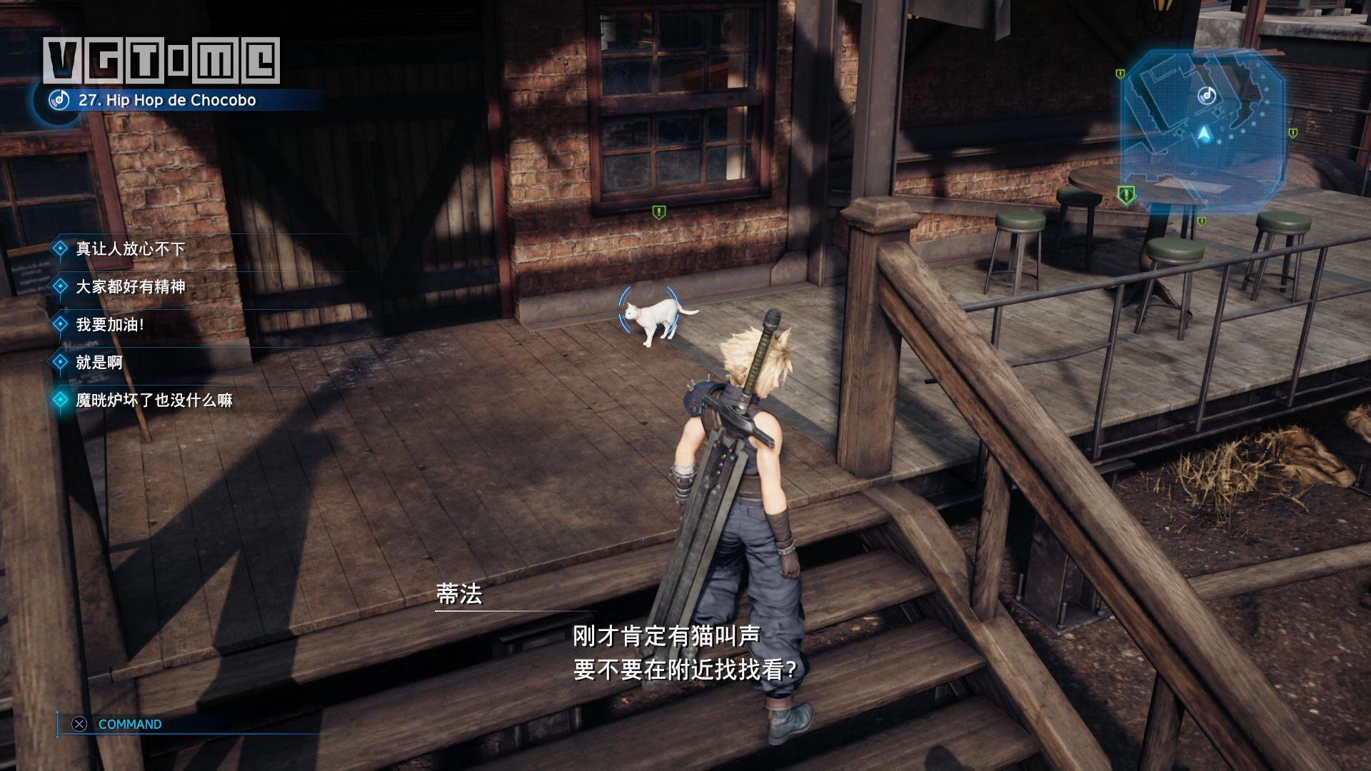 在围墙商店街外接到任务,让玩家帮忙找回三只陆行鸟,完成之后可以解锁免费无限次乘坐陆行鸟的票。完成这个任务之后玩家可以在贫民窟的几个主要地点快速旅行,非常方便。推荐大家优先完成这个任务,这样其他支线任务就不用跑路了。