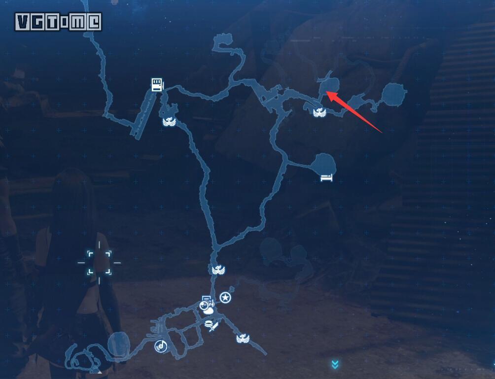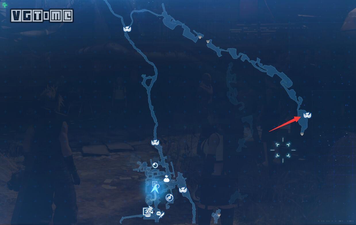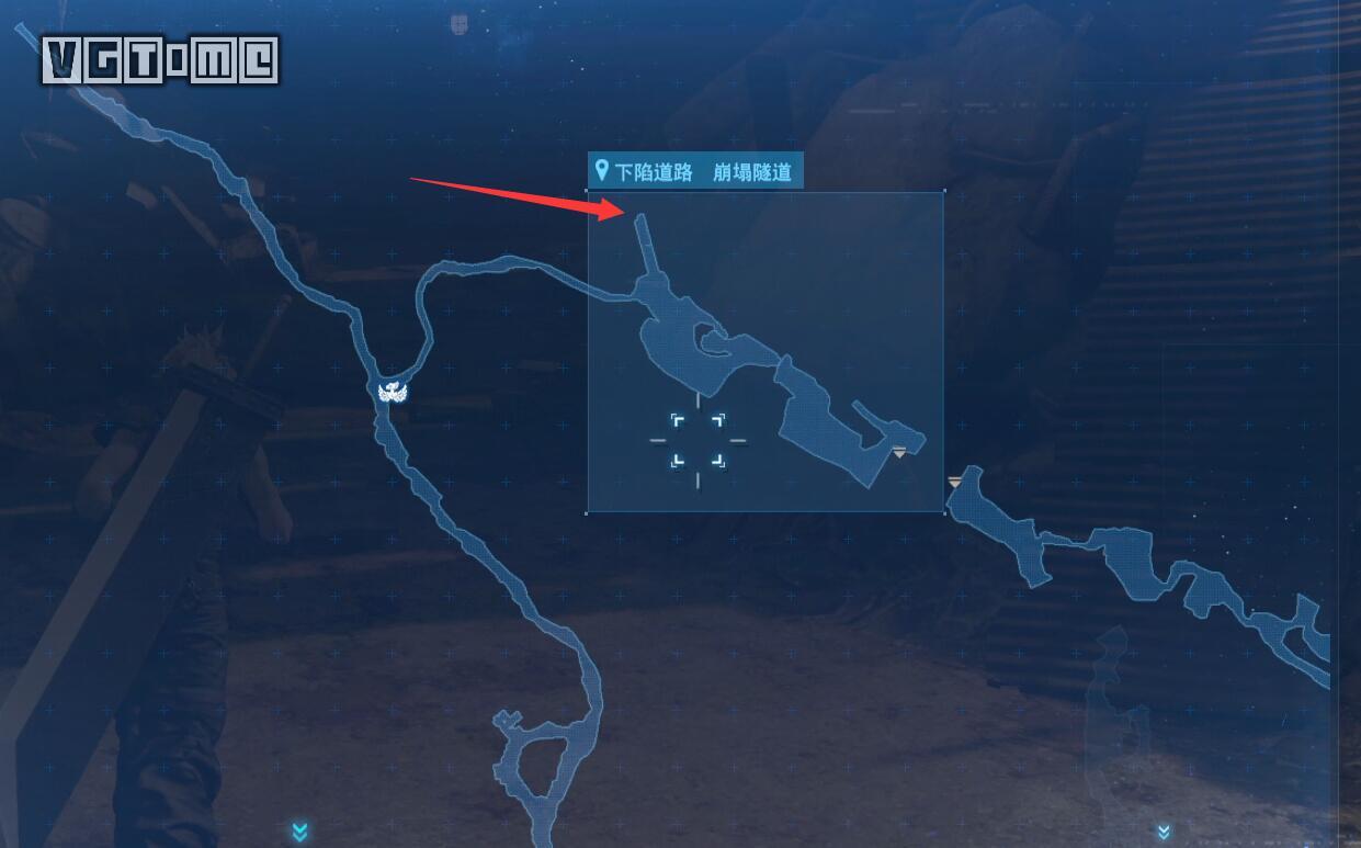 一只陆行鸟在下陷道路,就是克劳德第一次和爱丽丝走过的那个塌方的隧道。从围墙商店街一直往北走,在一个岔路口往右转进入,具体位置如下。这个地方有场战斗。