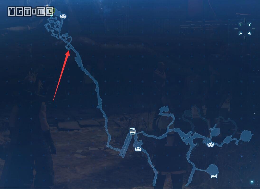 这个时候往回走,回到追击战中,克劳德和其他两人从两边包抄幼年阿勃祖,但是被他溜走的那个场景。继续往里走就能看到最后一个隐藏的财报。具体位置如下。