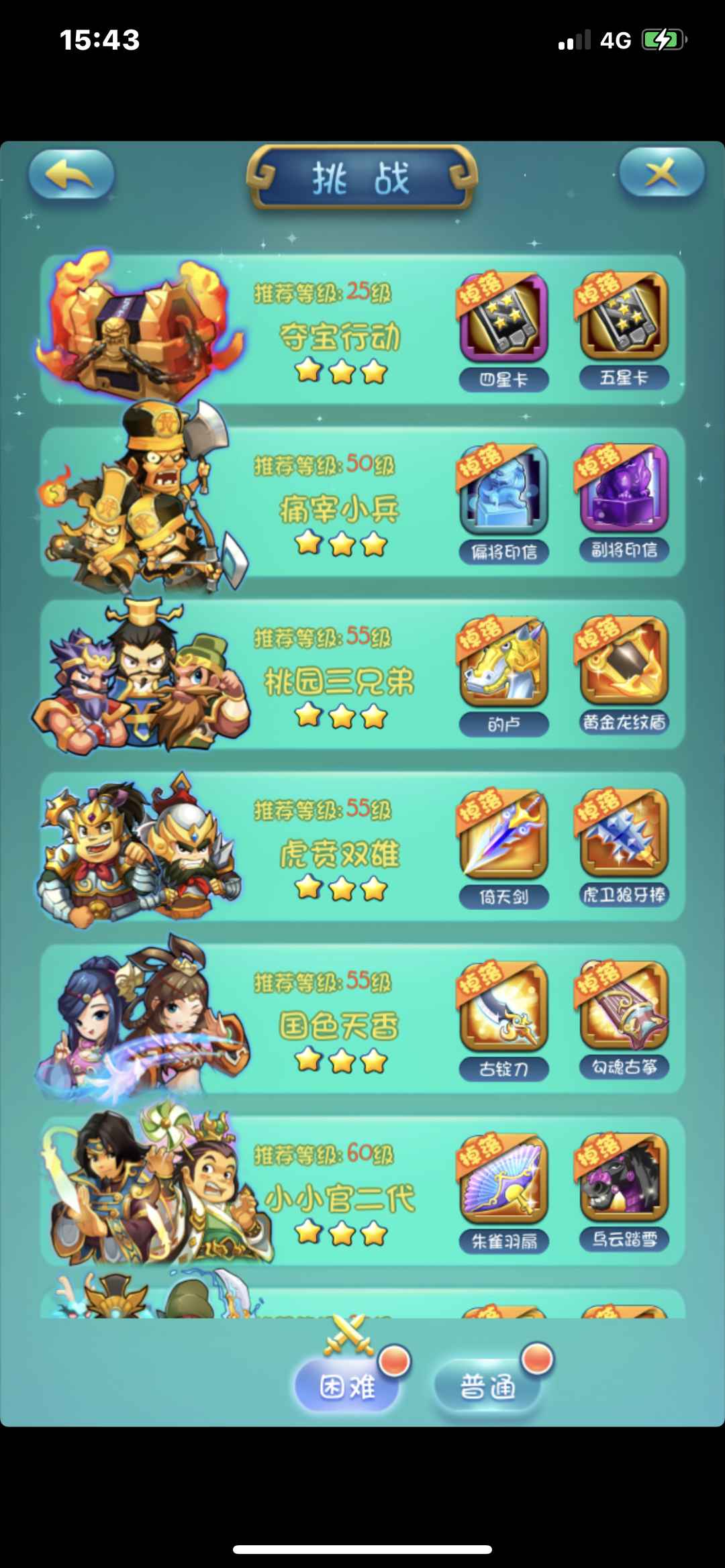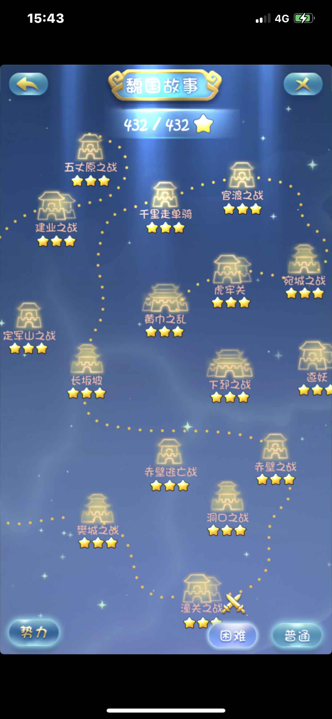 这款游戏主线分为魏、蜀、吴和铜雀台4条故事线,每条线都有简单、困难、噩梦三种难度。在故事模式中推图只能用该国的武将,但是在自由模式里可以使用任意武将。