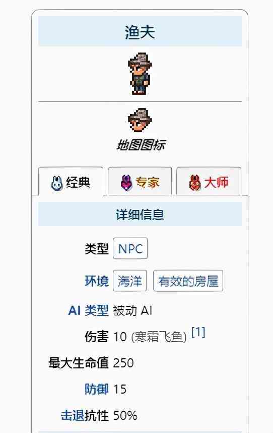 海上会有一个沉睡的渔夫NPC,唤醒之后就会出现在自己的房子里面,前提是自己的房子有空房间哦。渔夫 NPC 提供了日常钓鱼任务并用各种装备、钱币、药水、和时装物品来作为完成任务的奖励。(本人觉得渔夫发布的任务很晦气,找他需要的鱼,我能找一天)
