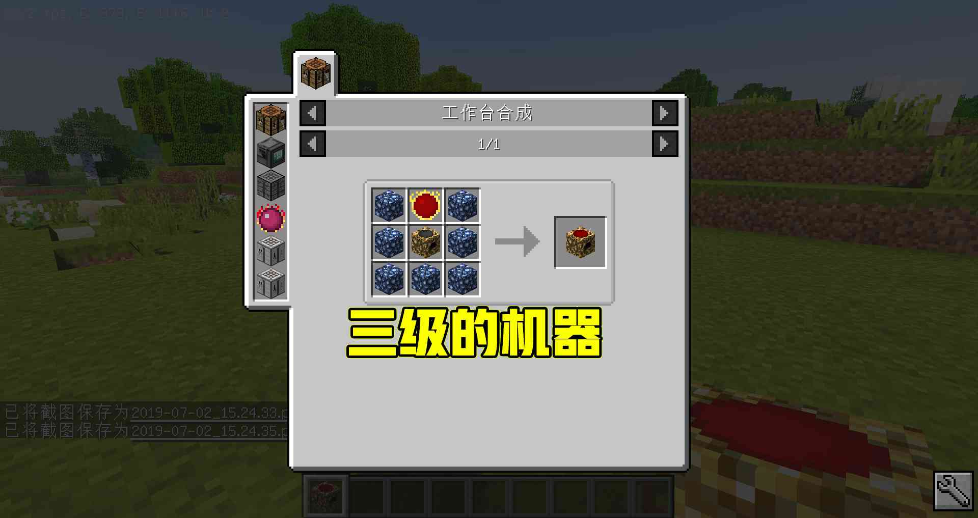 这是这个机器的升级版本,通过合成表我们就能够看到,他需要的是一个之前等级的一个机器再加上一圈萤石照明方块以及一个暗物质,这个机器可就比之前的继续速度要快很多了,毕竟一个暗物质在那里摆放着,这么昂贵的一个机器,可不能比之前的机器速度慢,不然的话就会吃很多亏的啊。