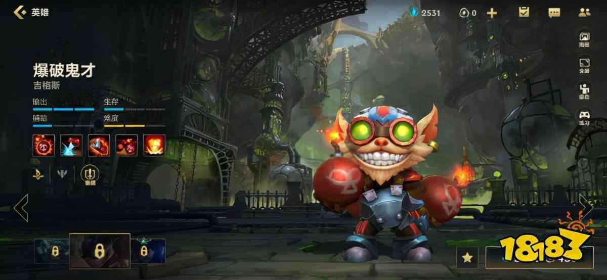 吉格斯作为端游中的老牌法师,在手游中也依旧保持着他简单粗暴的特色。