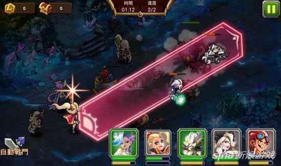 战斗流程采自动攻击,而当英雄头像下方的计量表满格时就可以手动施展技能。本作最大的特色就在于其采用了「指向性技能系统」,让玩家可以自行选择技能的攻击方向或位置。