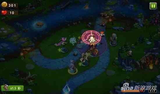 即使在塔防关卡也一样能发动技能,英雄每击杀一个敌方单位就会获得部分能量,当能量满时玩家可手动释放大招。