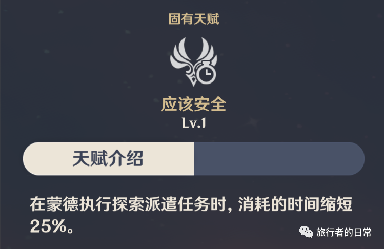 可以使班尼特在进行蒙德的派遣任务时可以缩短25%的时间,为极致精打细算玩家,提供了更快的资源获取渠道