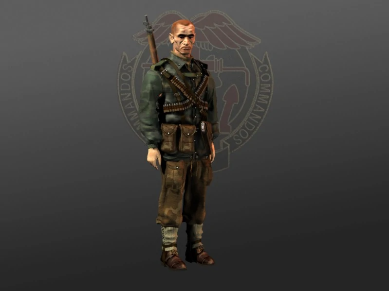 作为一个极端暴力和极具侵略性的人物,他的上司对他很头疼,对敌人来说就是一场噩梦了。他的领导才能和决心使他称为盟军敢死队的领袖。绿色贝雷帽是年龄最大的敢死队员,他拥有强壮的肌肉,擅长击倒敌人和快速捆绑敌人,撞开几乎所有门,从高楼跳下,爬电线杆。在沙地或雪地里,他可以掩埋自己让敌人无法发现。他是盟军敢死队里跑步第二快的,生命力是所有人中最强的。绿色贝雷帽喜欢用匕首杀敌,随身携带无线电诱饵,吸引敌人查看。