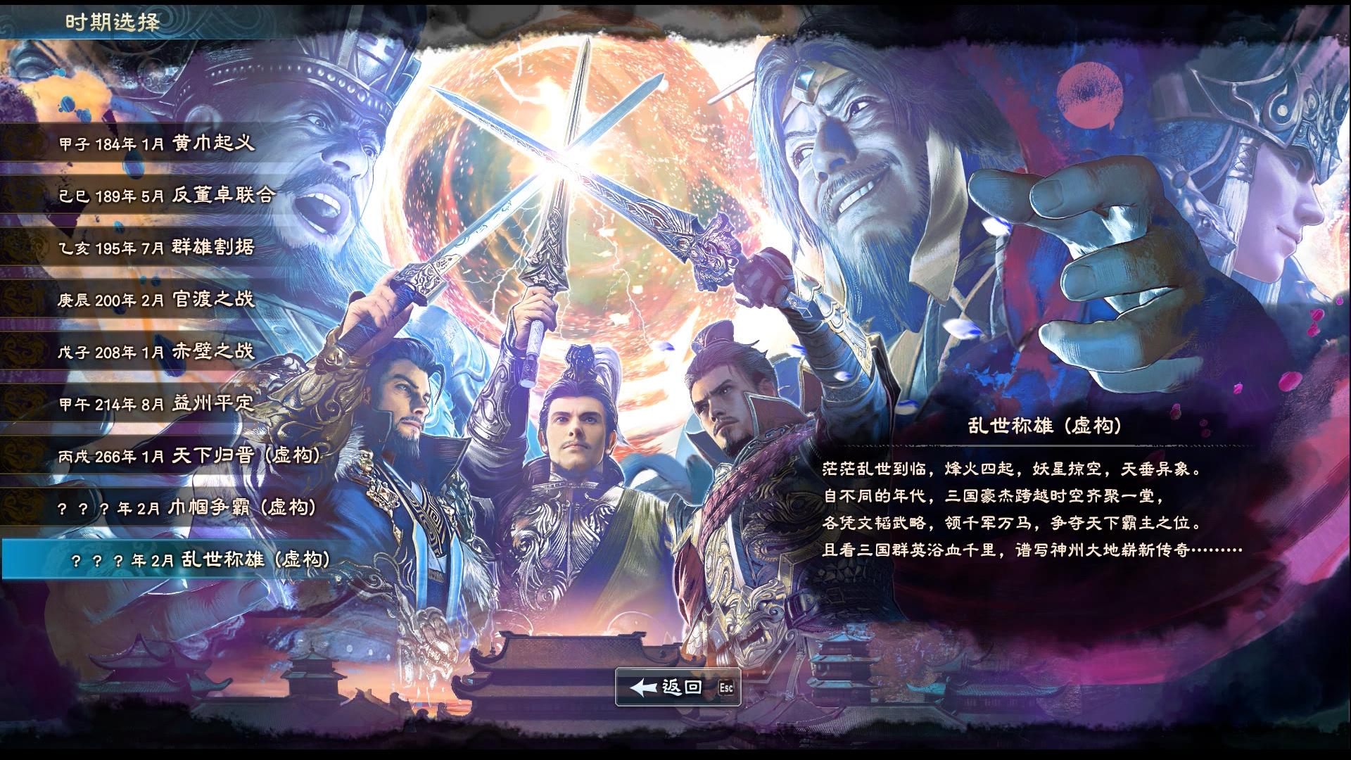 “乱世称雄”剧本则描绘了一个时空错乱,群英齐聚的三国世界。在这个剧本中,玩家会以随机势力开局,与跨越时空而来的三国豪杰们齐聚一堂。在这里,你可能会看到关羽大战邓艾,也可能会见到武侯智斗钟会。且看三国群英浴血千里,谱写神州大地崭新传奇!