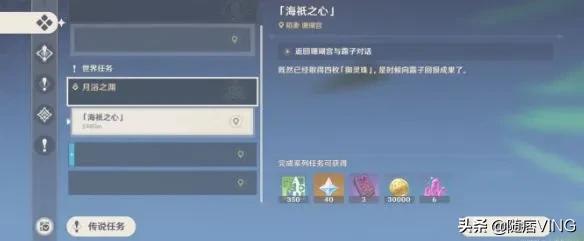 前置条件:玩家完成月浴之渊4个任务以后,即可开启任务「海祇之心」