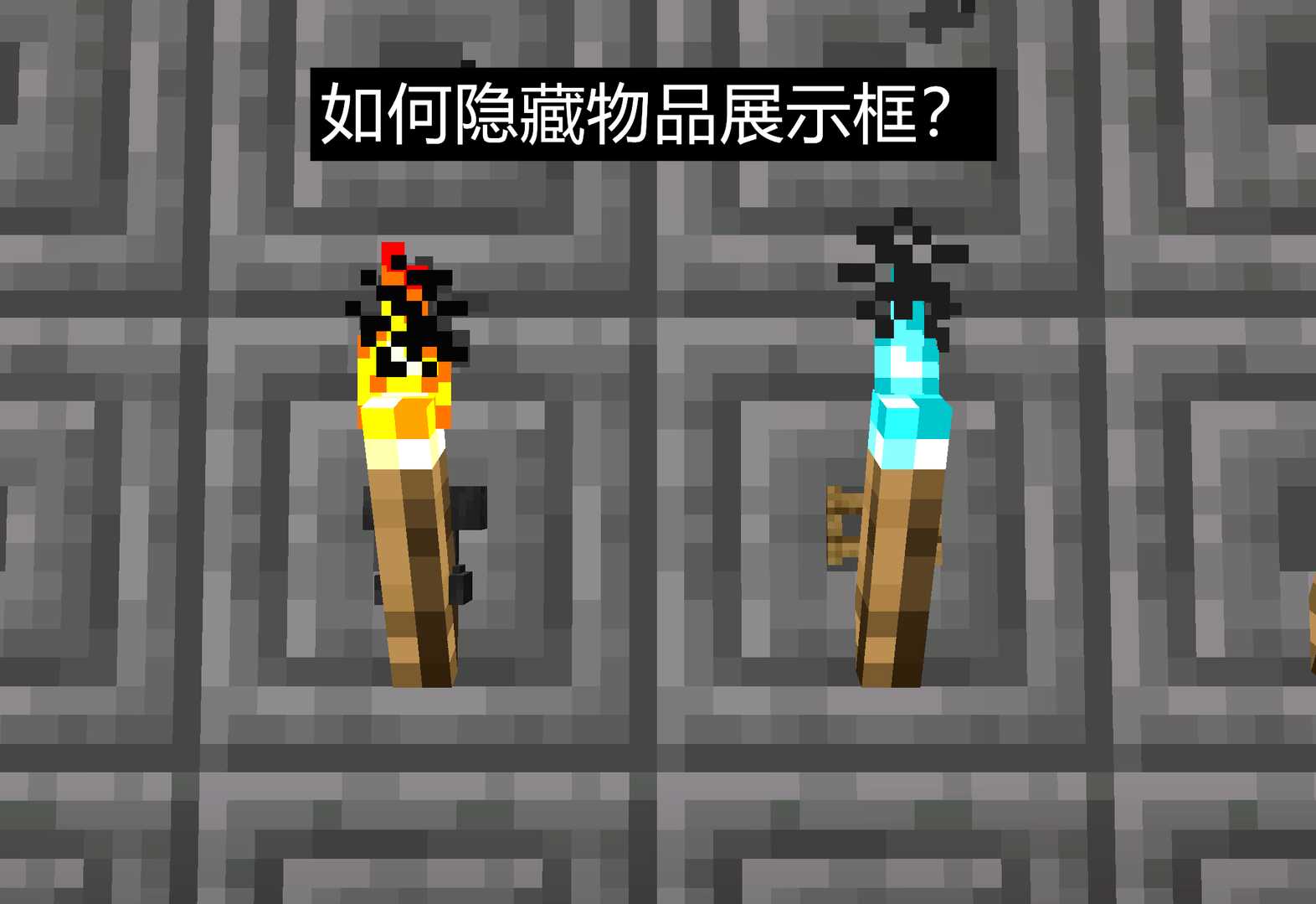 二、火把如何放在物品展示框外?一个空白的物品展示框,直接放置火把固然会将火把放置在了展示框的内部。但是若将准星对准隔壁相邻方块上的火把侧面,就可以将火把与展示框同插在一格方块上。