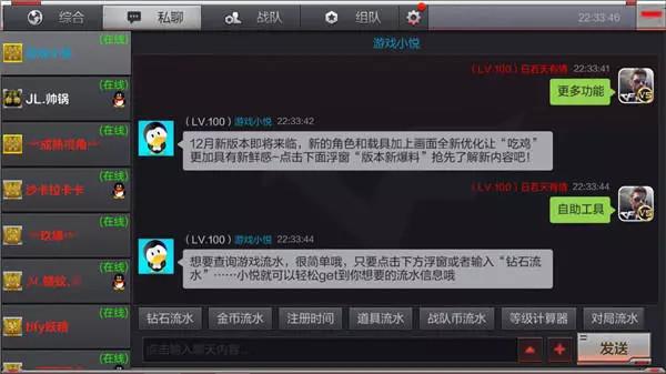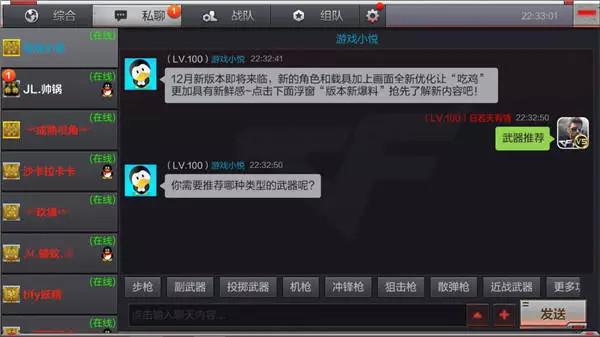 “游戏小悦”是CFM研发的智能机器人客服助手,可以帮助玩家自助咨询解决游戏的相关问题,极大便利了广大玩家的游戏体验。“小悦”是玩家的CFM助手机器人,也是玩家最忠实的好友。我们只要打开好友列表,就可以自由的向“小悦”咨询相关游戏问题了,“小悦”会24小时全天候为玩家排忧解难。