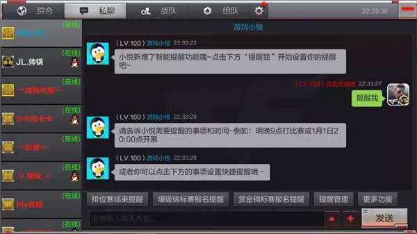 在新版本中,小悦更新了“智能提醒”功能。玩家选择该功能后可以设置重要游戏时间提醒。如排位赛结束提醒、爆破锦标赛报名提醒、赏金锦标赛报名提醒等。智能提醒功能如同游戏的内置闹钟一般,可以让玩家不再错过重要的游戏比赛,对记性差的小伙伴可以说是极大的福音了。