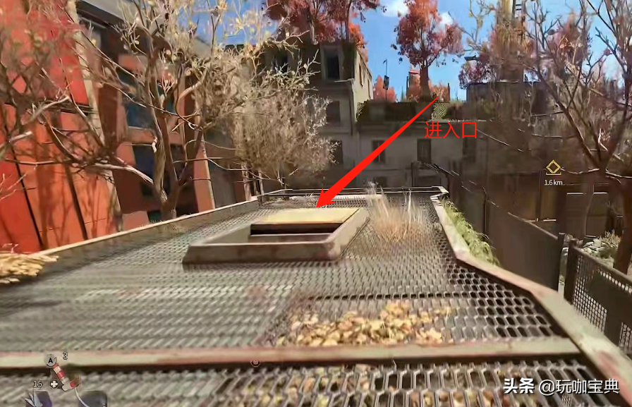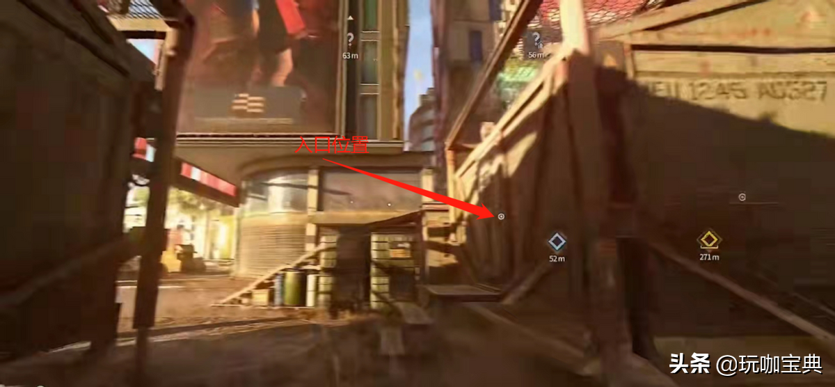 入口在图片标记处,无需战斗直接打开进去拿东西就行。里面会刷新一把金色武器、一管抑制器、一些物资。大概每隔半个小时刷新一次,除抑制器外都会重复刷新。