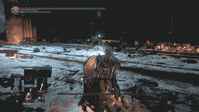 Boss的攻击速度快,硬直小,伤害大,顶盾绕行会比较有利。通常等Boss出完硬直较大的招式之后再砍2刀,第3刀大致会被防御住。