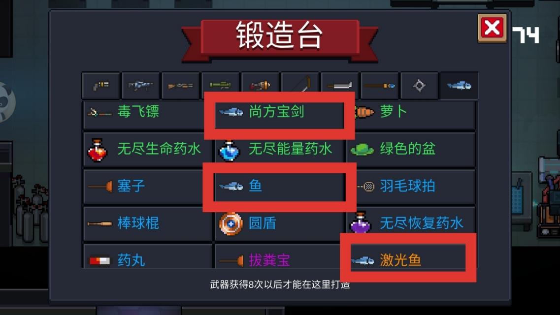 3、所有鱼类武器都有可能从鱼缸中获得。