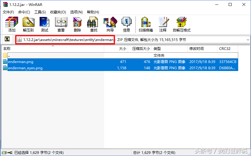 找到assets\minecraft\textures\entity\enderman目录,把目录中的两个png文件复制出来。