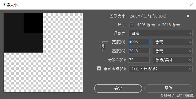 小编放大了64倍,即4096x2048 px,大家可以自行调整,但是不要改变宽高比。
