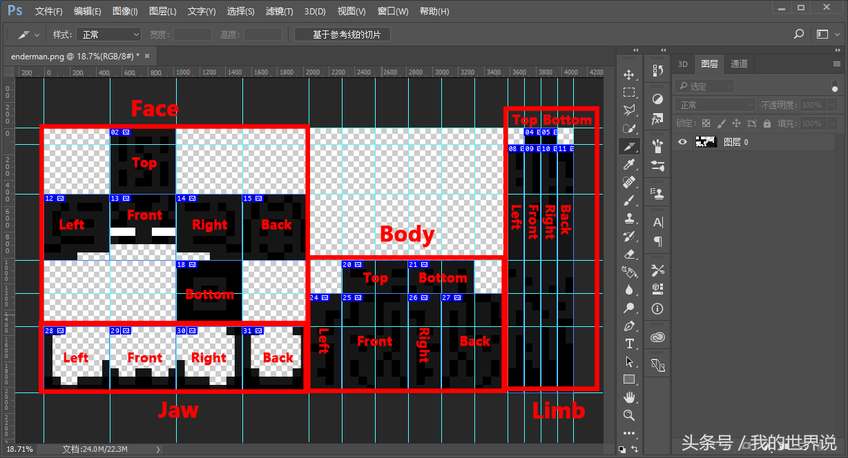 末影人的眼睛也是需要按比例放大。然后切成跟面部大小一样的贴图。