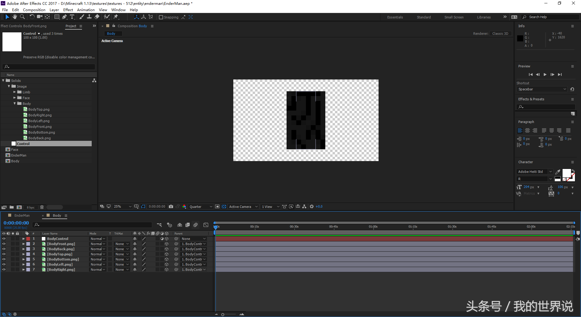 末影人是游戏我的世界原版中最高的生物,经常被玩家们称之为小黑。下面就教大家用Ae制作末影人的3D高清模型。