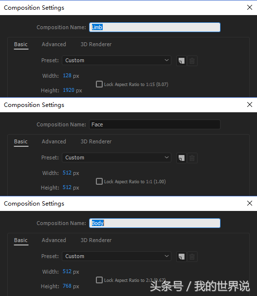 接下来我们需要把三个合成的大小调整成适合的大小,即调整成各自Front面的大小。