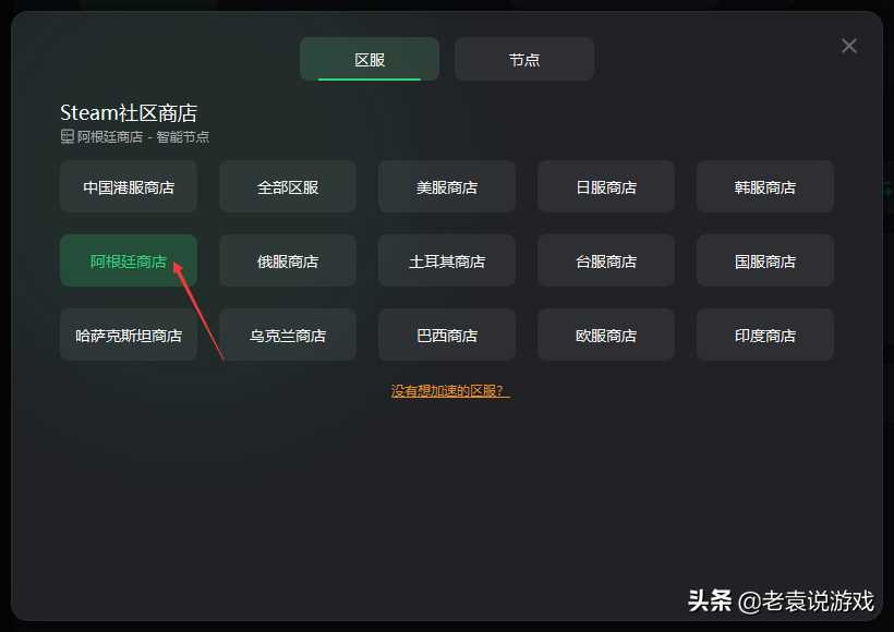 首先,玩家需要打开游戏加速工具——奇游加速,搜索点击steam社区商店,我们以阿根廷区为例,那就加速阿根廷商店。