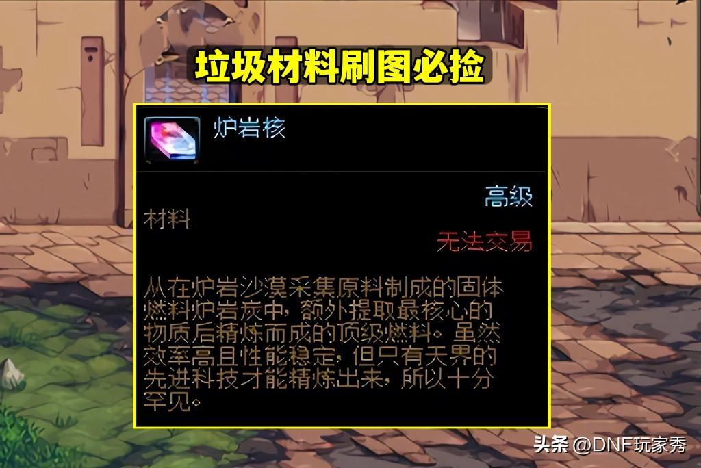 所以,兄弟们,以后刷图,遇到“炉岩核”,一定要捡哟,垃圾材料变成宝贝,而且有钱都买不到。