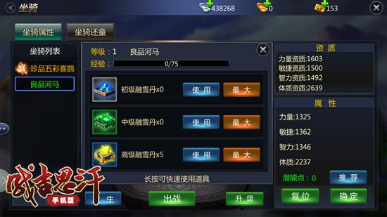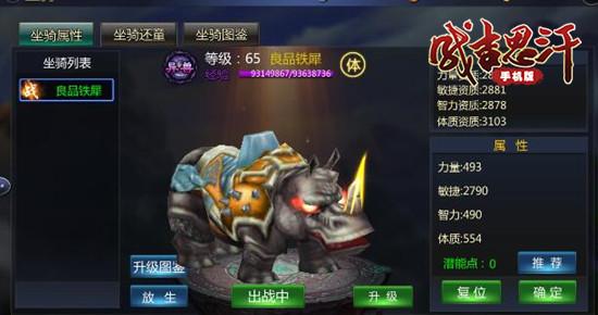 国战类MMORPG手游《成吉思汗手机版》已于10月18日开启不删档测试。秉承端游作品骑马打仗的传统,坐骑同样成为了手机版中不可缺少的特色部分,与端游相比手机版的玩法将更有特色:坐骑将对人物战斗力有很大影响,今天就为大家来全面解析坐骑养成玩法。