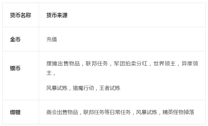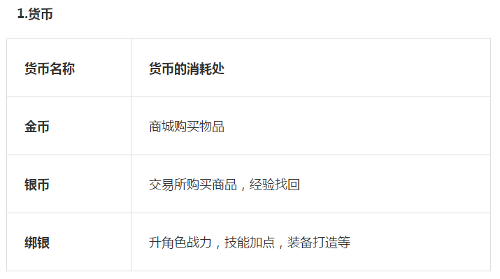 消耗类:金币、银币、绑定银币 共3种货币,其中金币是游戏商城通用货币,银币是玩家之间流通货币。