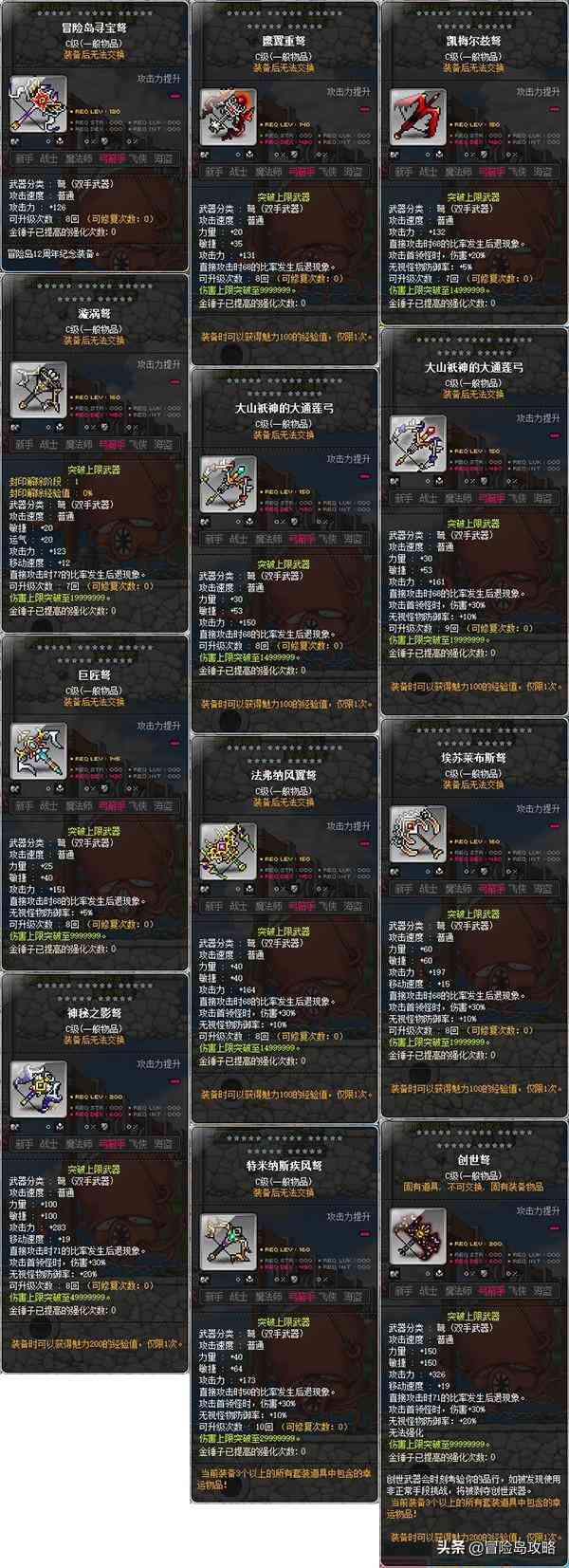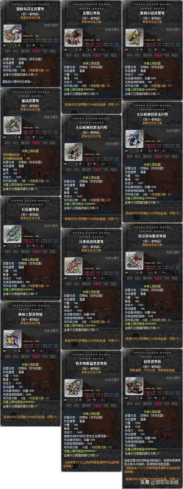 一直以来想做一个可以供冒险岛岛民查询资料的地方,以上数据均是自己在游戏中积累收集而来,希望能帮助到各位岛民。方便之余,点赞收藏关注一下,您的支持将会是我最大的动力!