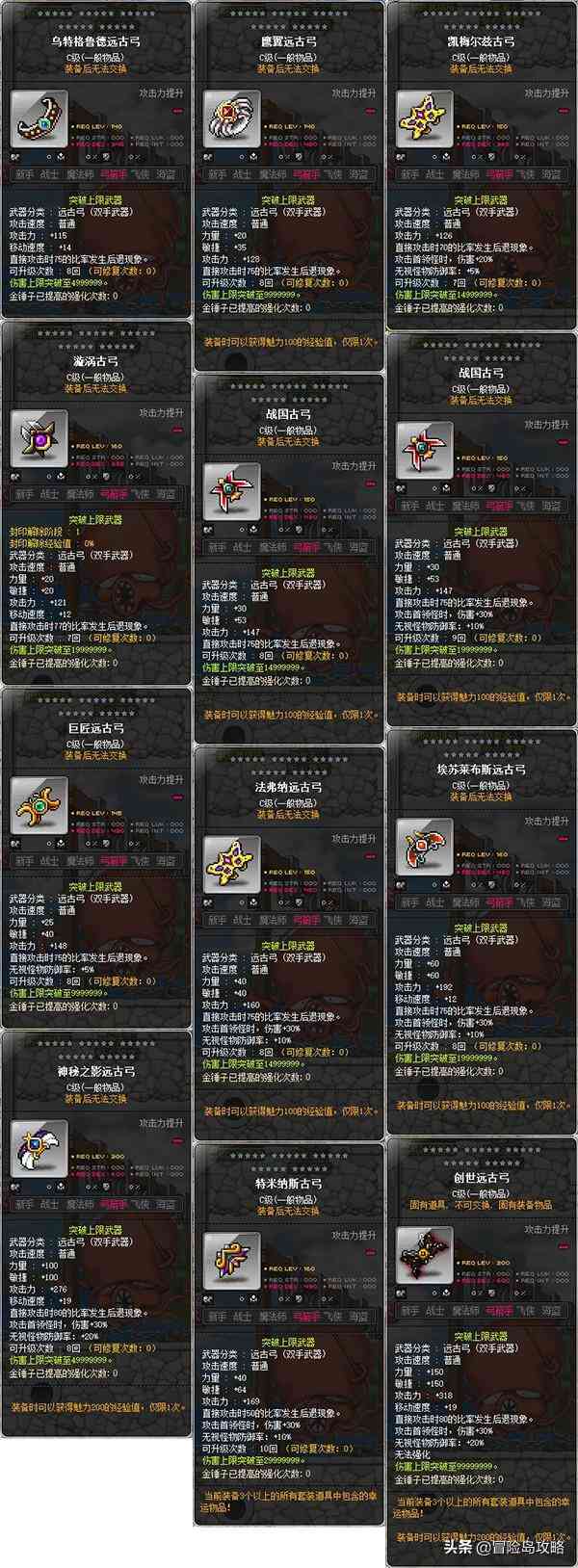言归正传,接下来给大家带来的是冒险岛弓箭手现阶段常用装备一览。