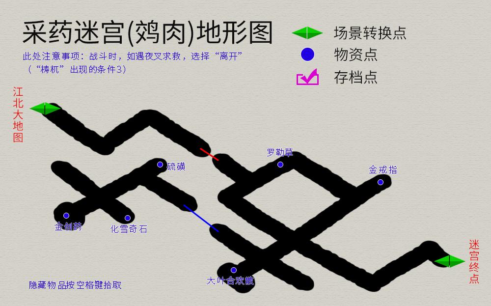 村内法宝--蓝格怪衣(终极装备,别错过。建议进村后首先拿取,因为后面被赶出村后进不去)。地形图如下: