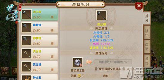 问道手游打造装备的流程基本分为 5 个步骤,分别是:拆分、重组、炼化、强化、改造。首先需要的就是对装备进行拆分,装备拆分可以将装备的附加属性拆分出来并附加到超级黑水晶之中,为后续的装备重组做准备。只有 50 级以上未改造的蓝装备、粉装备、金装备才能进行拆分,玩家可以使用超级黑水晶进行拆分装备,然而这种方法并非百分百成功。玩家也可以使用混沌玉来完成拆分,而混沌玉是百分百成功的,如何选择就要看玩家们自己了。