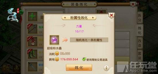 完成装备重组之后,60 级以上的装备可进行装备炼化,装备炼化的目的是让装备出现其他附加属性。装备属性炼化需要消耗相应属性颜色的超级水晶(比如粉属性炼化需要消耗超级粉水晶),炼化之后可查看相应属性是否是自己所希望的,如若不是,重新炼化即可。