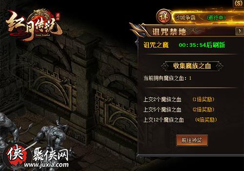 进入诅咒禁地后,只要击败地图中的怪物都能得到一定的魔族之血,收集它们,你可以在右侧栏查看当前拥有魔族之血的数量,上交的数量越多,获得的奖励也就多,交多少个全看各位小伙伴的意愿啦!诅咒之魔2小时刷新一次,成功击杀后会获得海量魔族之血,说出来怕你不信,总之记得要把握机会。