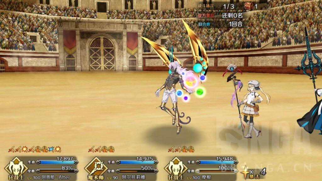 马嘶没有触发对魔力的情况狂娜直接宝具清场不补刀,摩根特攻黑A 红卡暴击补马嘶。